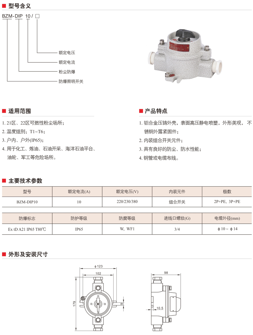 BZM-DIP10系列粉塵防爆照明開關(guān)