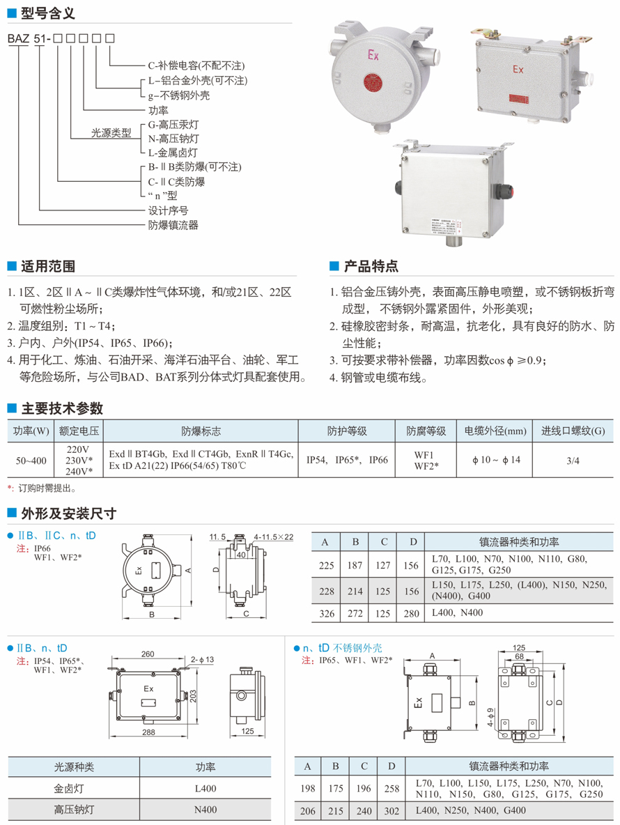 BAZ51系列防爆鎮(zhèn)流器